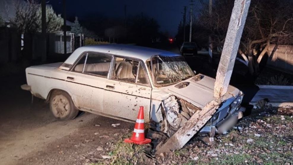 На Херсонщине пьяный водитель на ВАЗе врезался в опору ЛЭП и заработал штраф