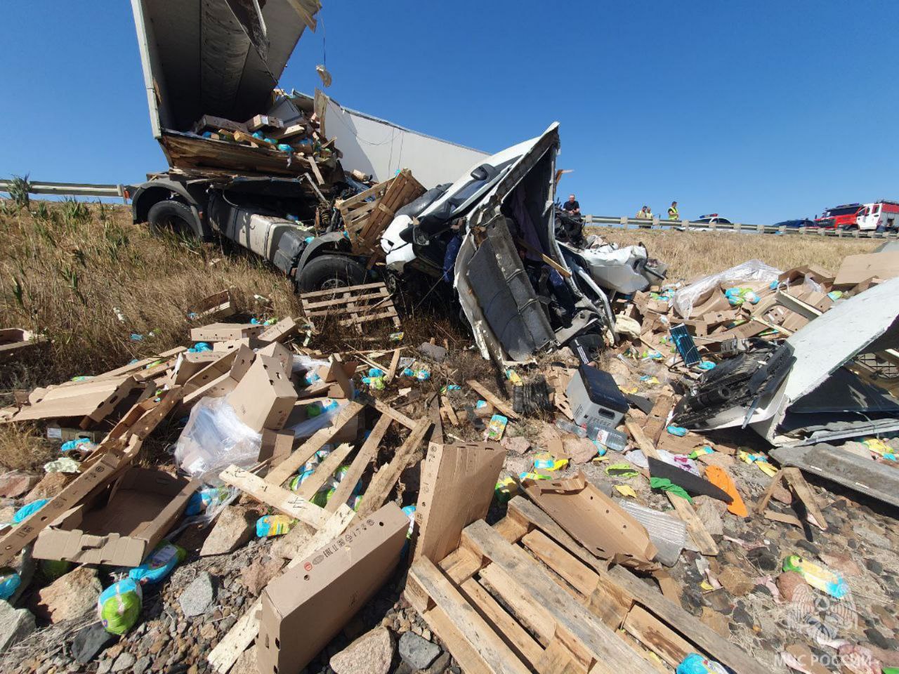 ГЕНИЧЕСК. ТАВРИЯ. В Сальково сотрудники МЧС Херсонской области ликвидировали последствия аварии с двумя грузовиками. В результате ДТП пострадали два человека. Об этом сообщили в пресс-службе ведомства.