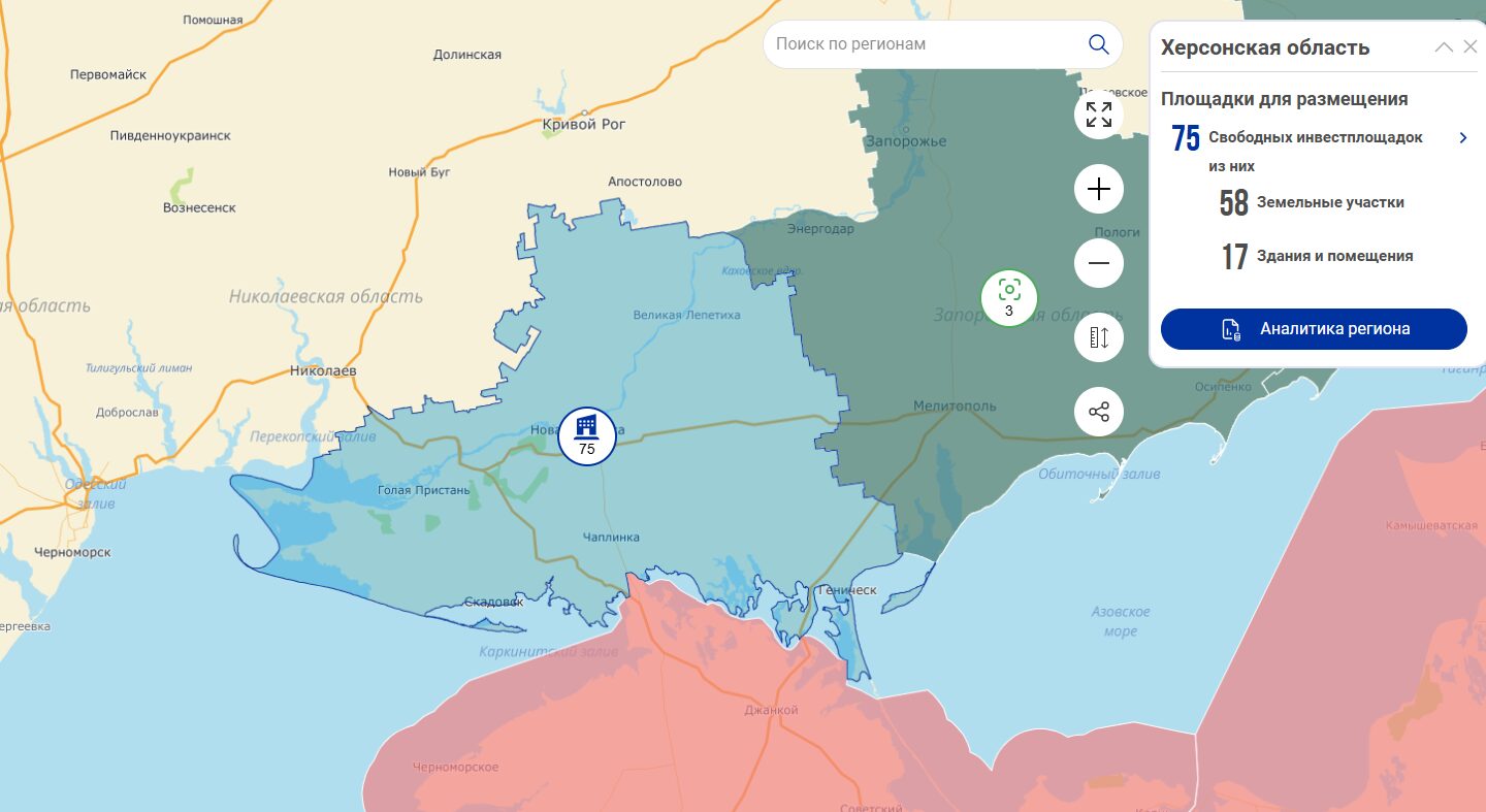 Херсонская область разместила 75 площадок на инвестиционной карте России