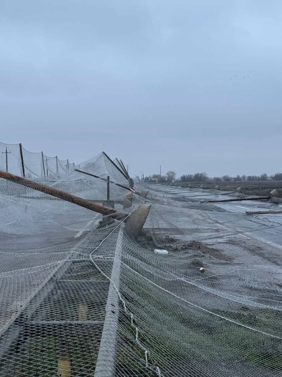 На опубликованных кадрах показаны упавшие ограждения и защитная сетка от БПЛА, которые заняли большую часть дороги.
