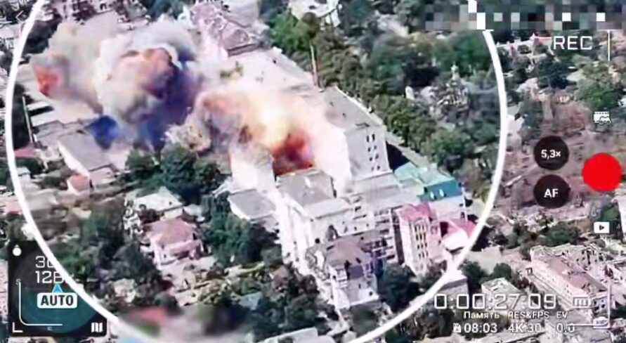 ГЕНИЧЕСК. ТАВРИЯ. Российские войска 24 июля нанесли авиаудар по зданию бывшего ГУ МВД в Херсоне. Информацию подтвердил губернатор Херсонской области Владимир Сальдо. Видео удара есть в распоряжении ТРК «Таврия».