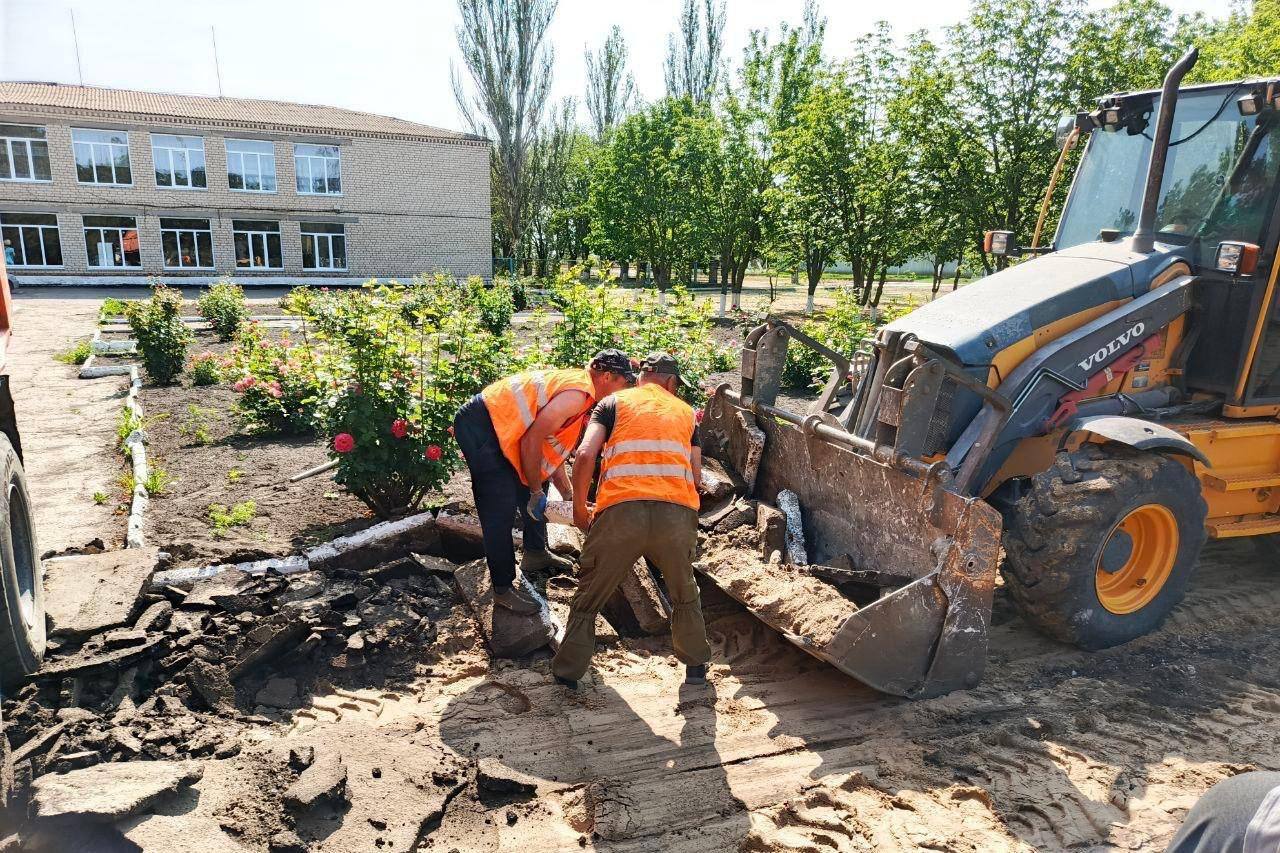 Кроме того, на территории школы строится новая спортивная площадка. Все работы по ремонту и благоустройству планируется завершить к началу нового учебного года.
