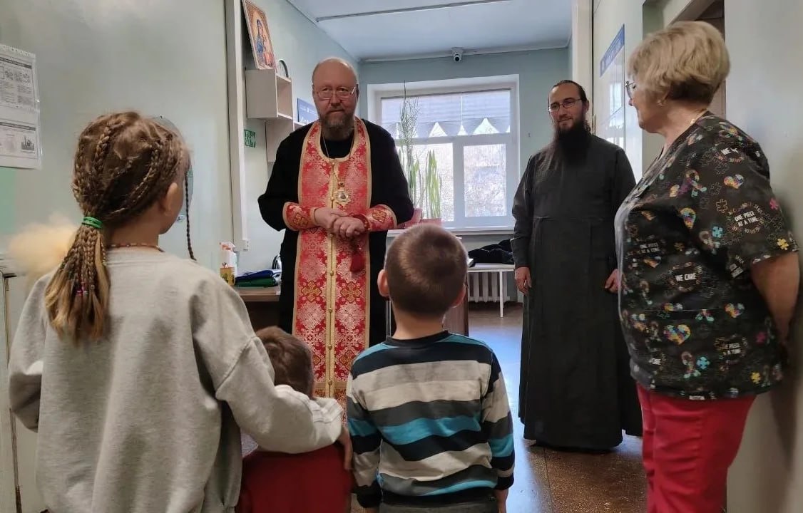 В ходе визита епископ Филарет вместе с настоятелем Свято-Пантелеимоновского храма протоиереем Николаем Калиниченко поздравили маленьких пациентов и медперсонал с Пасхой, а также освятили и вручили им куличи и сладкие подарки.