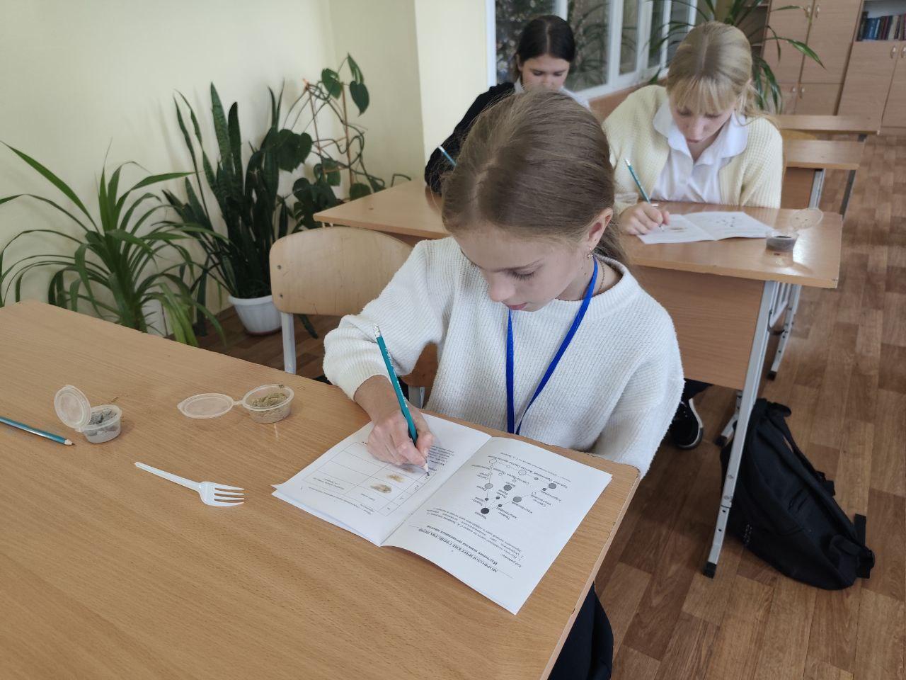 На практической части занятия ребята изучали основные морфологические признаки почв, анализируя их цвет, структуру и состав.
