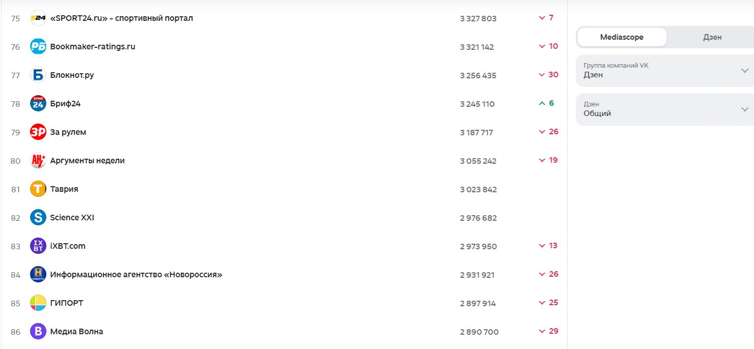 <p>Согласно данным Mediascope, количество человек, контактировавших со СМИ на Дзене хотя бы раз за период с десктопного или мобильного устройства составило 3 023 842 человека. Каждый пользователь считался один раз независимо от устройств и типа контента. В подсчете участвовали как Дзен.Новости, так и <a href="https://dzen.ru/tavria">блог ТРК «Таврия» в Дзене.</a></p>