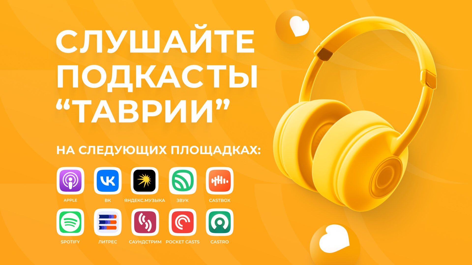 <p>Подкасты «Таврии» уже размещены в Apple Podcasts, «ВКонтакте», «Яндекс Музыке», Spotify, «ЛитРесе», «Звуке», Castbox, «Саундстриме», Castro и Pocket Casts. Поиск осуществляется по названию подкаста, например: «История для своих», «Поди разберись», «Крутой переплет». Каждый слушатель может свободно включать выпуски в любое время и на любом устройстве, что делает потребление контента более гибким и комфортным.</p>