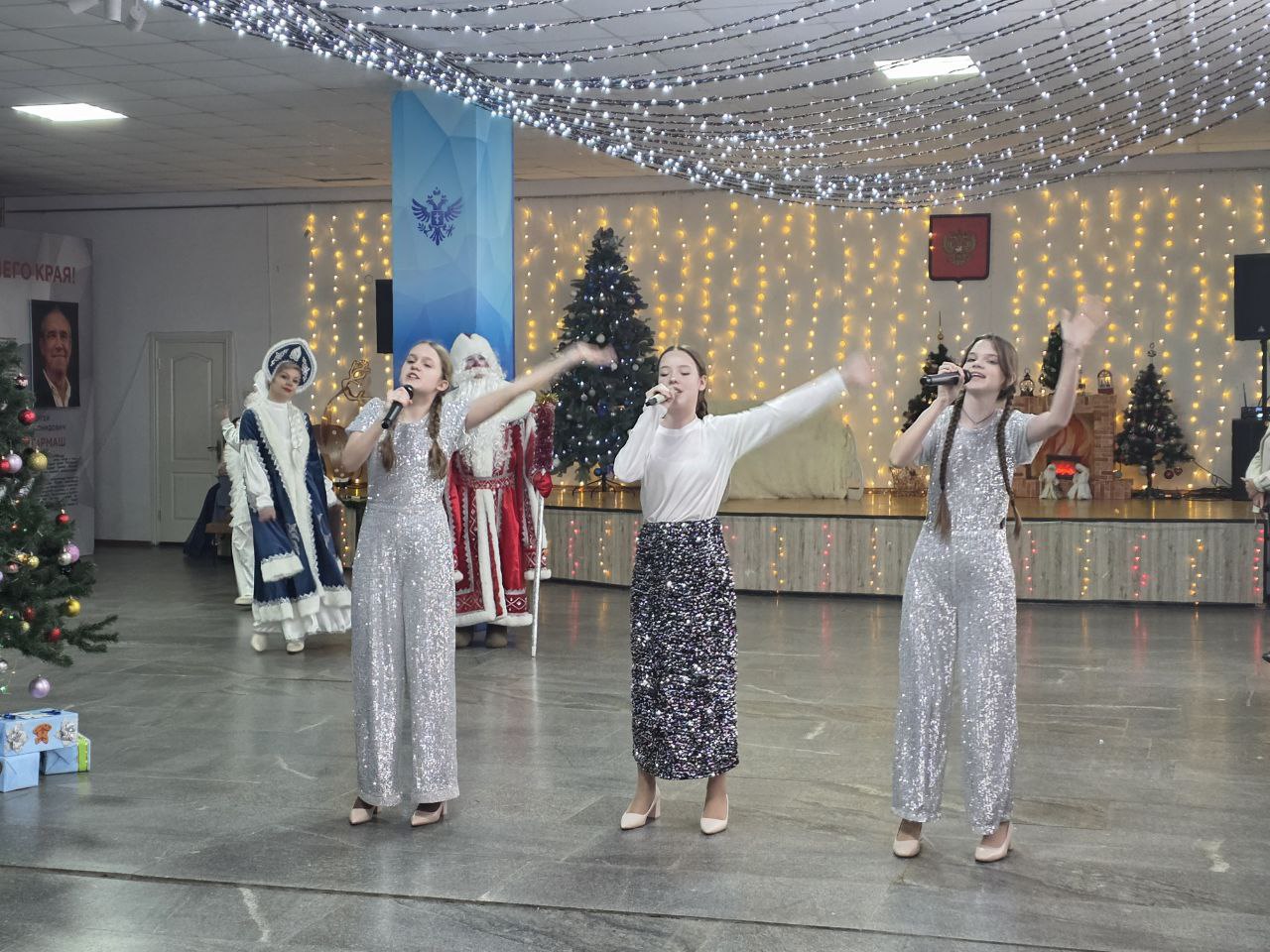 «Праздничную атмосферу создавали любимые герои: ведущие Снежаусы, Дед Мороз и Снегурочка, озорной Волк и хитрая Баба Яга, а также ростовые куклы – веселый снеговик, добродушный гном и нарядная елочка», — говорится в сообщении.