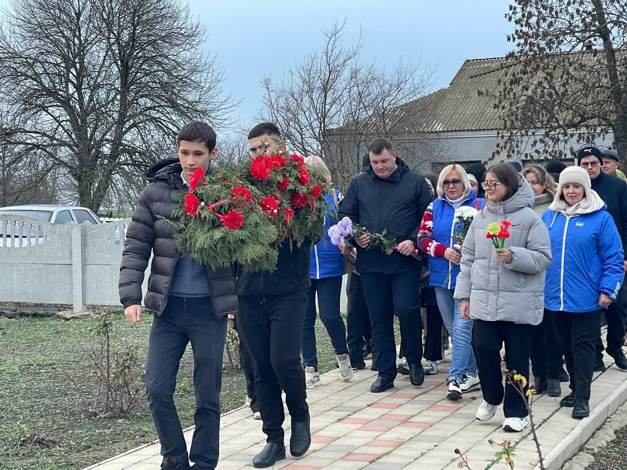 В этот день школьники, жители села, активисты и сотрудники администрации во главе с заместителем главы Андреем Гарковенко пришли к памятнику погибшим землякам. Они возложили цветы и почтили память героев минутой молчания.