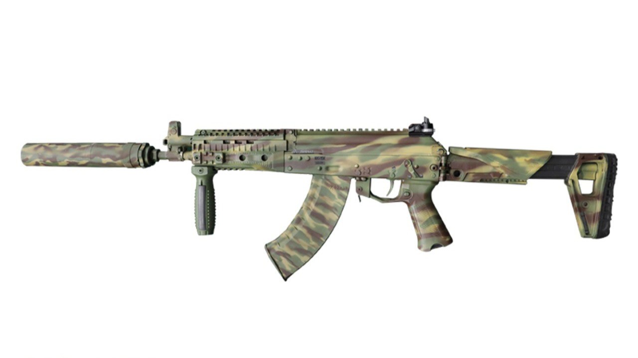В комплект входит прибор малошумной стрельбы (ПМС). Впервые в производстве автоматов Калашникова применена расцветка «Мультикам», которую пользователи высоко оценивают за эффективную маскировку.