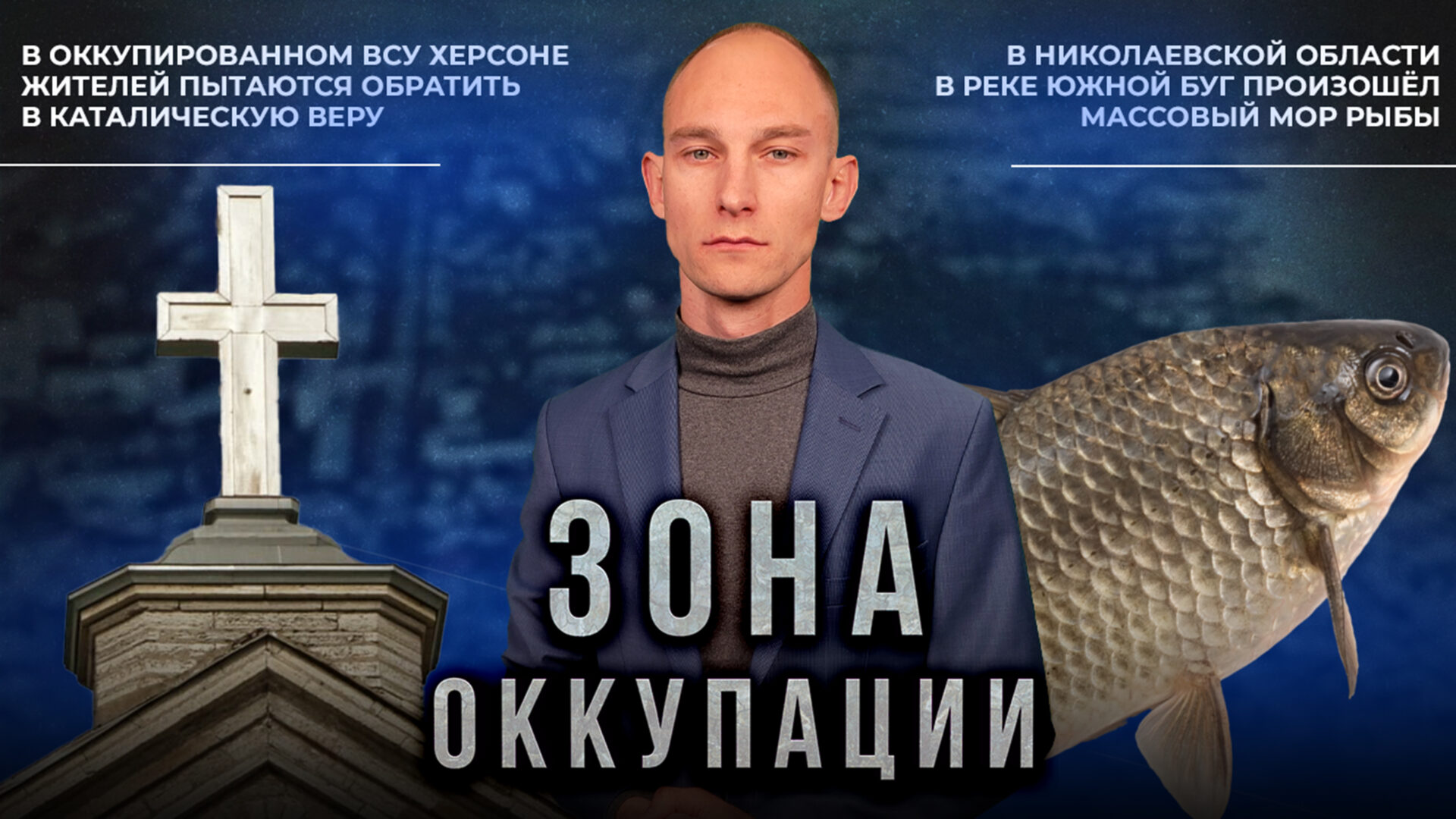 <p>В Николаевской области в реке Южной Буг произошёл массовый мор рыбы, в Одессе «украиномовные» отдыхающие пытались взорвать многоквартирный дом, а в оккупированном Херсоне из местных жителей пытаются сделать адептов католицизма - обо всем этом в новом выпуске передачи «Зона оккупации».</p>